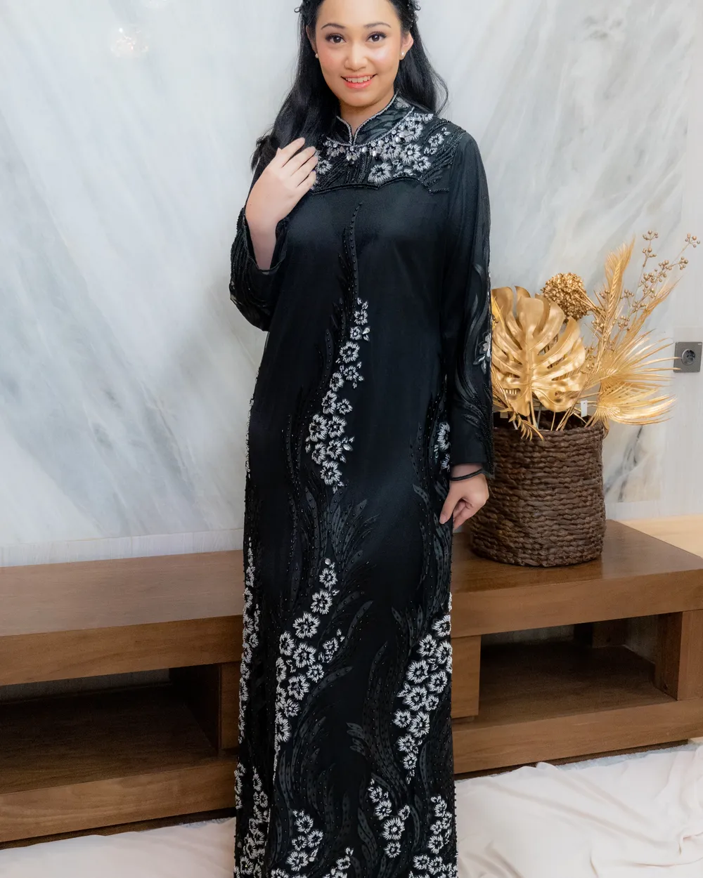- Desain Elegan & Fungsional: Dilengkapi dengan Mandarin Collar (kerah shanghai), snap on button, dan back zipper opening untuk kemudahan pemakaian dan gaya kontemporer.